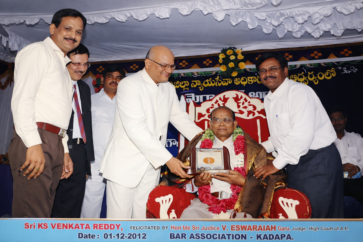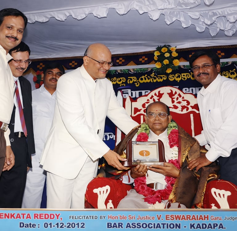 A crowning moment in his distinguished career came on 01-12-2012, when Late Sri Karimireddy Venkata Reddy was publicly honoured for his more than four decades of service to the legal profession.